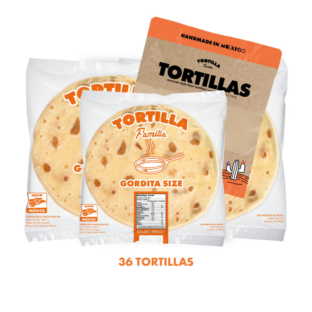 We only use 5 ingredients to preserve the natural Sonoran Style Tortilla Flavor and quality! Water, Salt, Flour, Vegetable Lard( made from soy and corn, NO PORK LARD used), and calcium propionate.